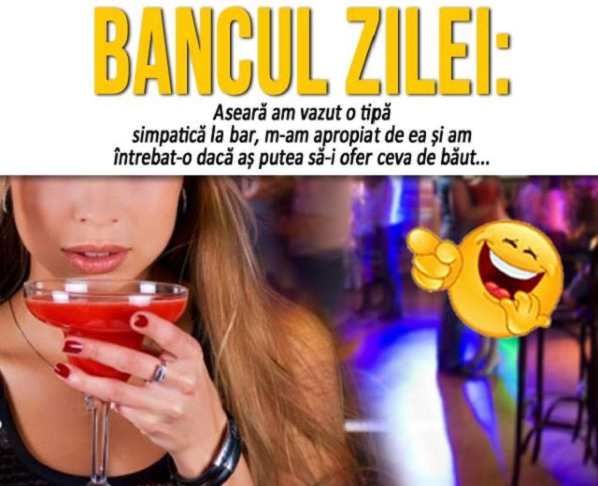 BANCUL ZILEI - SÂMBĂTĂ: ”Aseară am văzut o tipă simpatică la bar, m-am apropiat de ea și am întrebat-o dacă aș putea să-i ofer ceva de băut...”