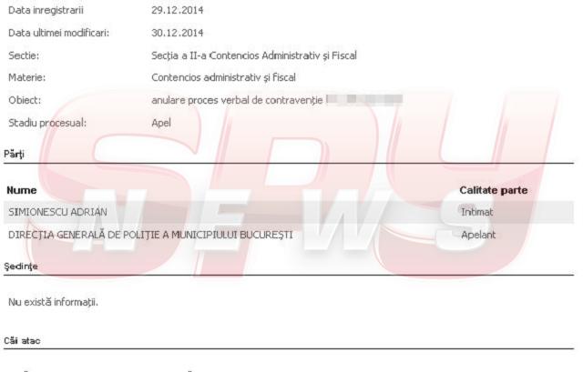 Numele manelistului apare într-un proces aflat deja pe masa judecătorilor bucureşteni. Adrian Simionescu cere anularea unui proces verbal de contravenţie primit pe parcursul anului trecut.