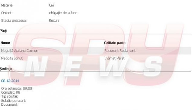 În 2010, Ionuţ şi Carmen Negoiţă au decis să pună capăt unei căsnicii de 11 ani şi au divorţat fără prea mult tam-tam. Scandalul însă tocmai începea. În ultimii patru ani, numele celor doi apar în nu mai puţin de 15 procese. Numai în 2012, Carmen Negoiţă şi-a dat de şapte ori în judecată fostul soţ. Chiar zilele trecute ea l-a chemat - din nou - pe Ionuţ Negoiţă în faţa judecătorilor din Ilfov.