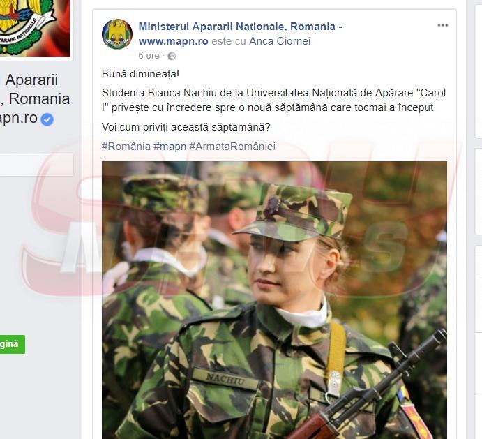 Tânăra a stârnit curiozitatea internauţilor după ce reprezentanţii Ministerului Apărării Naţinale au distribuit o imagine cu ea, însoţită de textul: "Bună dimineața! Studenta Bianca Nachiu de la Universitatea Națională de Apărare «Carol I» privește cu încredere spre o nouă săptămână care tocmai a început. Voi cum priviți această săptămână?"