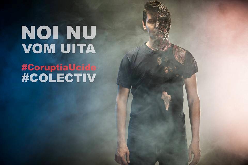 Iniţiativa se numeşte "#Corupţiaucide #Colectiv" şi este promovată prin intermediul unei serii de imagini în care apar tineri desfiguraţi.