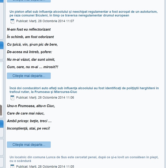 Conform legii, reporterii SPYNEWS au făcut o solicitare către IPJ Harghita. Surpinzător, răspunsul subofiţerului era însoţit... de un catren.