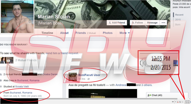 Culmea, în timp ce jurnaliştii noştri discutau cu reprezentanţii Penitenciarului Mărgineni, pentru a le oferi gardienilor date despre puşcăriaşul internaut, s-a întâmplat un lucru bizar: contul de Facebook al deţinutului periculos a fost...suspendat! Ulterior, profilul deţinutului a fost reactivat, însă mai multe postări au dispărut, semn că cineva a "umblat" la setările contului şi a modificat conţinutul paginii web.