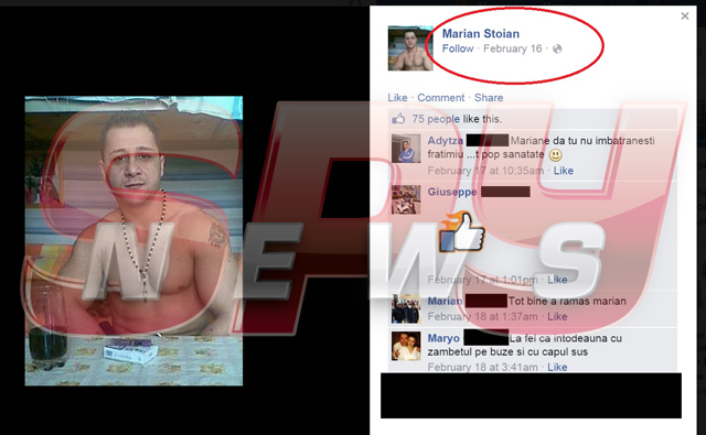 Cu toate că şefii puşcăriei Mărgineni sunt convinşi că deţinutul nu are acces la internet şi că respectivul cont de Facebook este administrat de "persoane din afară", puşcăriaşul Marian Stoian ţine legătura cu cei dragi şi postează imagini din celulă. La bustul gol, cu zâmbetul pe buze...În ultimele zile, bărbatul a fost extrem de activ pe site-ul de socializare, iar cea mai recentă postare este de aseară. De asemenea, ieri, "deţinutul care nu are telefon" a discutat cu un reporter incognito de la SPYNEWS.ro.