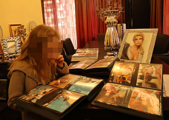 Fetiţa Danei Bălcăcean răsfoieşte albumele cu fotografii ale mamei sale