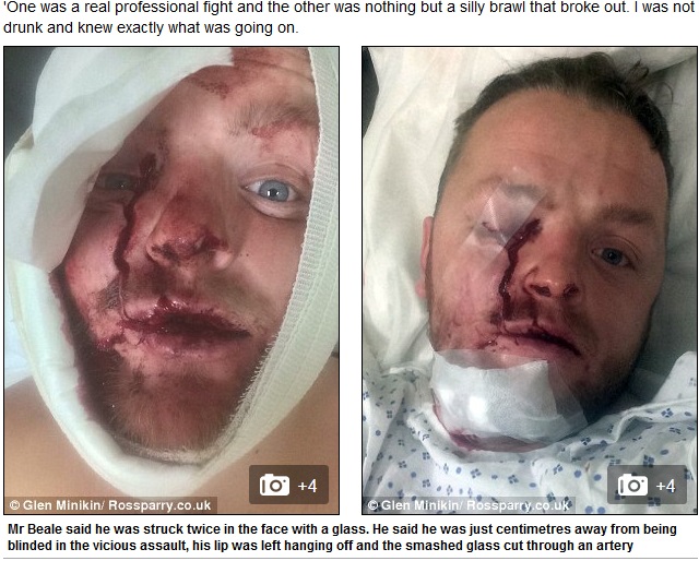 Glynn Beale a fost la numai câțiva centimetri distanță de a fi orbit în timpul unui atac într-un bar. O arteră importantă i-a fost tăiată în timpul atacului, iar atunci când a ajuns la spital, soția sa a leșinat după ce l-a văzut cum arată.