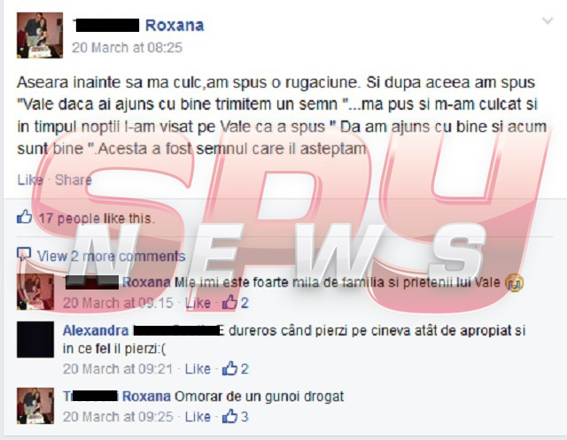 Pe de altă parte, una dintre cunoştinţele familiei Costea susţine că Valentin i s-a arătat în vis. Vestea morţii lui, după zile întregi presărate cu semne de întrebare şi speranţe, a picat ca un trăsnet peste cei care l-au cunoscut. A luptat până în ultima clipă, însă inima i-a cedat după o lungă suferinţă, lăsând în urma sa lacrimi şi regrete. Apropiaţii au aşteptat un semn divin, iar una dintre cunoştinţele lui Vale l-a văzut pentru ultima oară, în vis. "Aseară, înainte să mă culc, am spus o rugăciune. După aceea am spus: «Vale, dacă ai ajuns cu bine, trimite-mi un semn»". În timpul nopţii am visat că mi-a spus: «Da, am ajuns cu bine, iar acum sunt bine». Acesta a fost semnul pe care îl aşteptam", a scris pe un site de socializare o tânără.