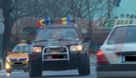 Un şofer a mers la înmormântare cu steagurile României pe capotă.