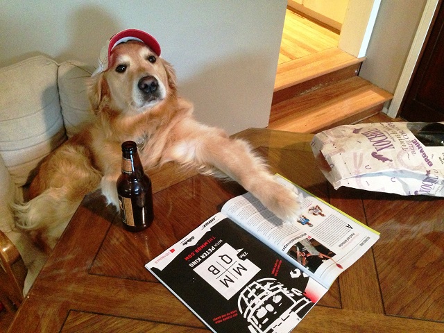 Un golden retriever a devenit vedetă după ce stăpânii lui i-au organiyat o şedinţă foto în care l-au costumat pe patruped în haine omeneşti şi l-au surprins în ipostaze specific umane.