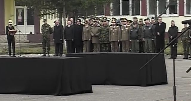 Ceremonie emoţionantă pentru victimele tragediei aviatice. Trupurile celor opt victime care au pierit, în urmă cu două zile, au fost aduse, astăzi, şi primite cu onoruri militare la Academia Forţelor Terestre din Sibiu. La ceremonie participă şi preşedintele ales, Klaus Iohannis.