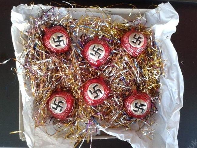 O cutie cu un set de globuri pentru bradul de Crăciun a stârnit controversă, dn cauza simbolului nazist pe care îl aveau imprimat, informează Metro. Globurile, în culorile roşu şi auriu, au pictate în mijloc celebra svastică, simbol al nazismului.