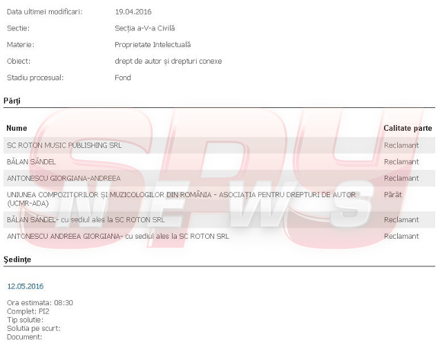 Tribunalul Bucureşti a reintrodus pe rol dosarul în care Andreea Antonescu alături de Săndel Bălan, tatăl Andreei Bălan, cer aproximativ două milioane de euro de la Uniunea Compozitorilor şi Muzicologilor din România. Suma, vehiculată de câţiva ani în mass-media, reprezintă drepturile de autor ale melodiei "Moşule, ce tânăr eşti", unul dintre hiturile trupei Andrei. Următorul termen de judecată a fost stabilit pentru 12 mai.