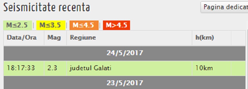 Un nou seism a avut loc în România, astăzi, 24 mai. Seismul de 2,3 grade pe Richter a avut loc în Galaţi, la ora 18.13.