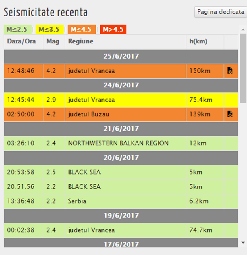 Un cutremur de 4,2 grade pe scara Richter a avut loc astăzi la ora 12:48 în România.