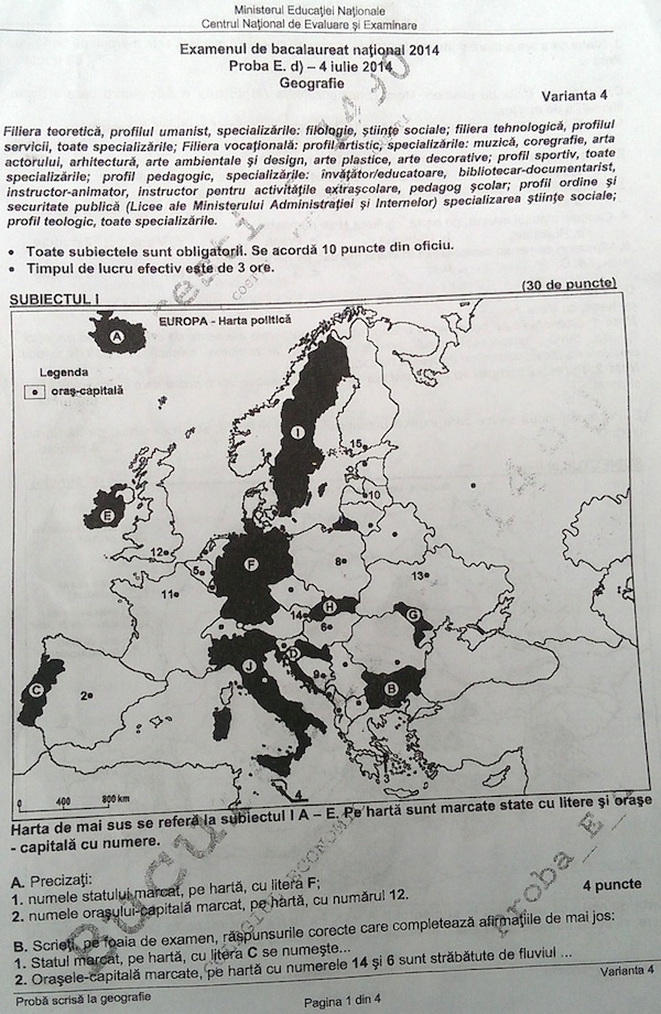 Dacă ai fi dat Bac-ul la Geografie azi, l-ai fi luat? Uite subiectele pe care le-au avut de rezolvat elevii