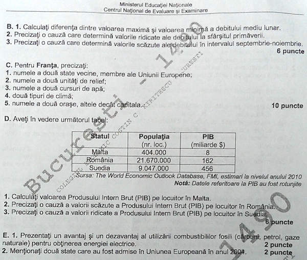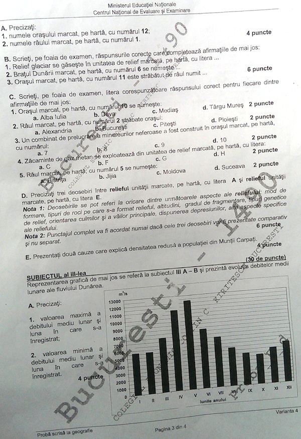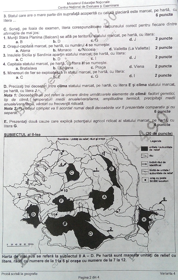 Iată subiectele pe care le-au avut de rezolvat elevii care au ales ca ultimă probă de bacalaureat geografia: