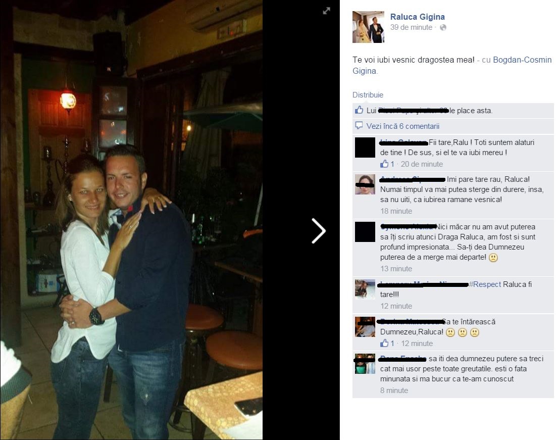 Tragedia petrecută acum aproape două săptămâni, cea în care polițistul Bogdan Gigină a murit în timp ce conducea motocicleta ca antemergător în coloana oficială a lui Gabriel Oprea, nu poate fi uitată de cei apropiați tânărului. Iar cea mai afectată este, cu siguranță, soția lui, Raluca, cea care, acum, își strigă durerea...