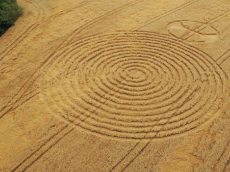 Pe câmp, în mijlocul câmpului cu grâu, aceştia au găsit nişte cercuri uriaşe, cu un diametru de 54,06 metri, realizate cu o precizie uimitoare. Văzute de la înălţime, aceste semne i-au convins pe oameni că sunt cu adevărat nişte "amprente extraterestre", deoarece nimeni nu avea acces şi timp să realizeze aceste "semne" în mijlocul recoltelor lor, pe durata unei singura nopţi.Imaginile vor fi studiate de UFO-logi, conform Antena 3.