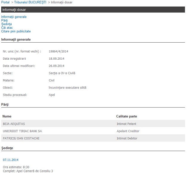Ciudat este faptul că firma care încearcă să recupereze datoria pe care Dinu Patriciu o avea la Unicredit Ţiriac Bank SA a depus dosarul după ce afaceristul fusese deja îngropat. Reprezentaţii societăţii ne-au spus că nu pot să dea detalii despre dosar şi nici nu au explicat cum de procesul se judecă la atâta timp de la decesul milionarului Dinu Patriciu.
