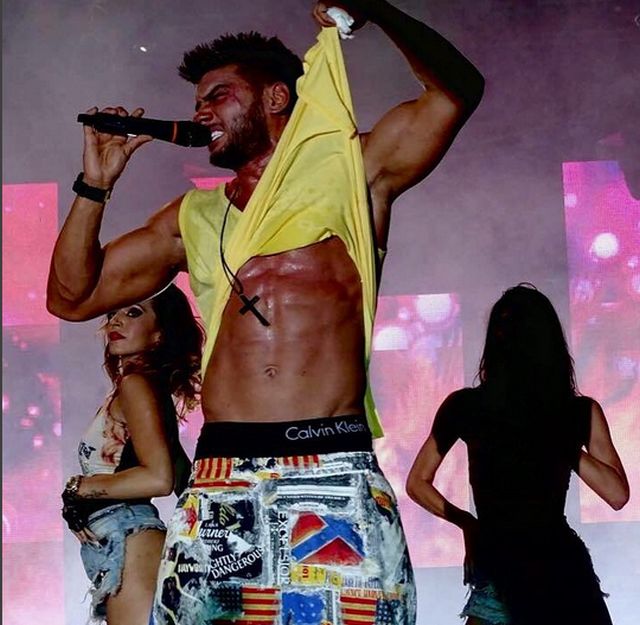 Fire excentrică, Dorian Popa nu se dă în lături când vine vorba să pozeze sexy sau să-şi arate muşchii pe scenă. Aşa s-a întâmplat şi la un concert pe care l-a susţinut recent, unde aproape că s-a dezbrăcat pe scenă.