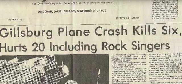 În anul 1977, tot în luna octombrie, pe 20, trupa rock Lynyrd Skynyrd, de mare succes la acea vreme, avea să se prăbușescă cu avionul într-o mlaștină din Gillsburg, Missouri. Accidentul a ucis 3 dintre membrii trupei. Liderul trupei - Ronnie Van Zant, chitaristul Steve Gaines și Cassie Gaines (vocalist) au murit pe loc, în timp ce ceilalți membri ai formației au suferit răni grave.