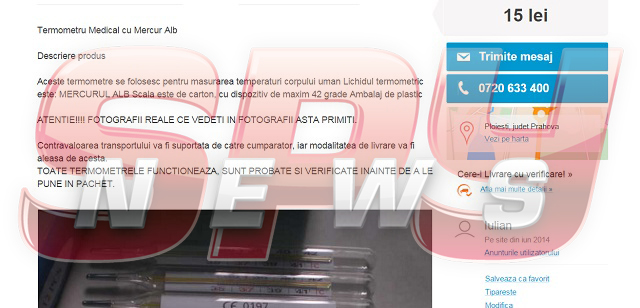 Reporterii SPYNEWS au sunat zeci de vânzători de termometre cu mercur, însă cei mai mulţi aveau pe stoc doar câteva bucăţi. Unul dintre cei care au mărturisit că pot aduce orice cantitate - mii de bucăţi - este un anume Iulian, din Ploieşti.