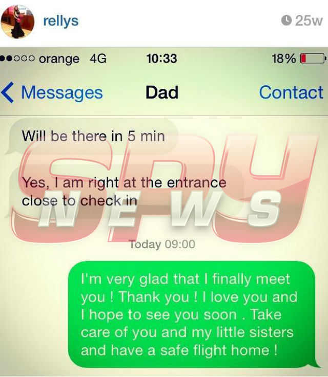 După marea reîntâlnire, Rellys Tonu i-a trimis tatălui ei un mesaj extrem de emoţionant. "Sunt foarte bucuroasă că, în sfârşit, te-am cunoscut. Îţi mulţumesc! Te iubesc şi sper să te revăd curând. Ai grijă de tine şi de surioarele mele mai mici. Zbor plăcut către casă", i-a spus Rellys tatălui ei.
