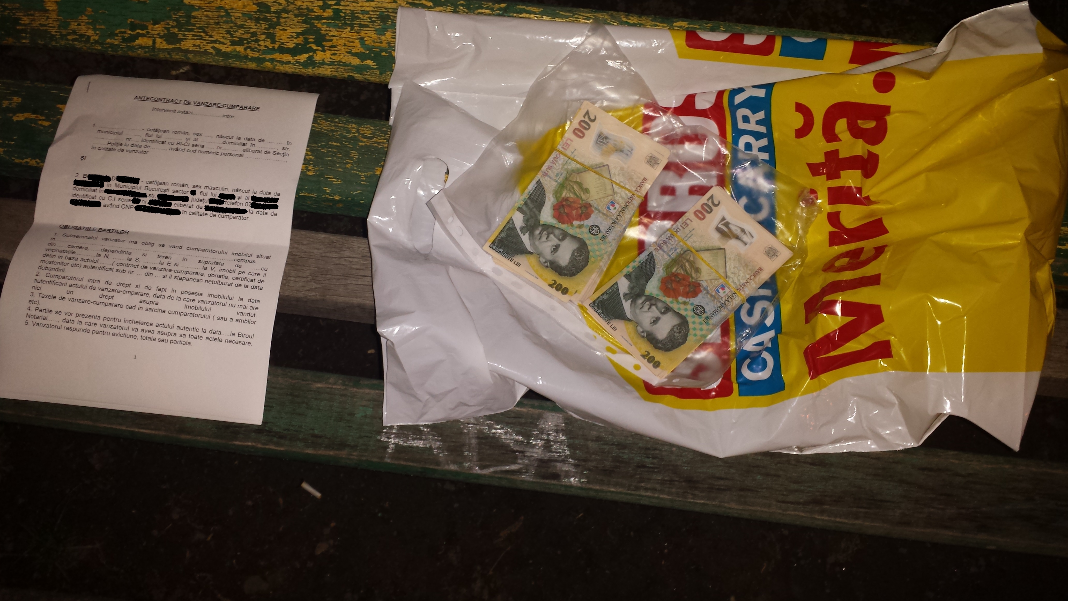 Bărbatul de 47 de ani semnase joi un antecontract de vânzare-cumpărare, moment în care a primit 39.600 de lei. Banii au fost găsiţi - spre norocul lui - de agenții Poliției Locale a Municipiului București, în Parcul Herăstrău, acolo unde bărbatul a poposit pentru câteva momente. Cei aproximativ 400 de milioane de lei vechi erau băgați într-o pungă din plastic. Pachetul a atras atenția unui echipaj format din agenții Patrulei Călare a Municipiului București care efectua în zonă o misiune de patrulare. Unul dintre agenți a descoperit că în punga abandonată pe bancă se mai afla, pe lângă teancurile de bani, și o copie a unui antecontract de vânzare –cumpărare a unui imobil. Lucru care a dus la identificarea rapidă a proprietarului.