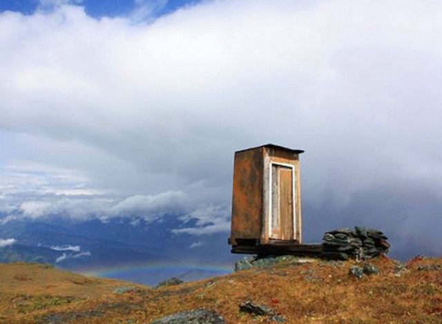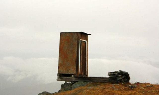 Într-un vârf de munte din Siberia, la o înălţime de 2600 de metri, unii oameni s-au gândit să monteze o toaletă. Culmea, ea chiar este folosită de către cercetătorii unei staţii meteo din apropiere. Unii se feresc să o utilizeze, având în vedere faptul că este construită chiar pe marginea unei prăpăstii, potrivit dailymail,com