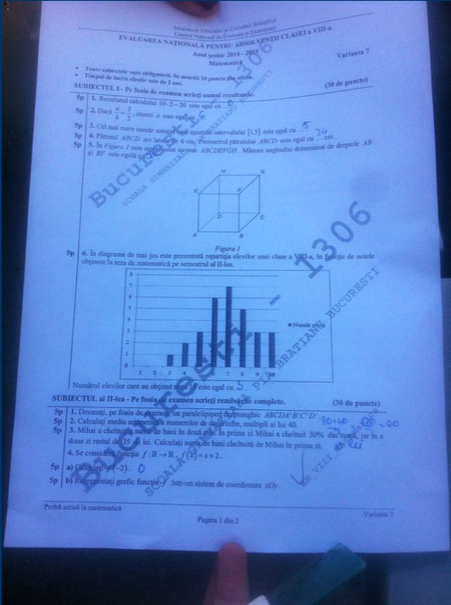 Homepage » Actualitate » EVALUARE NAŢIONALĂ 2015. Subiecte examen matematică. Iată ce probleme au avut de întâmpinat elevii