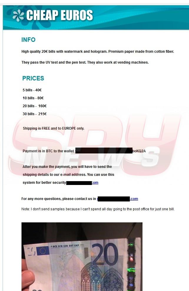 "Dark net", sau "Internetul întunecat", ascunde o sumedenie de "magazine online", de unde oricine îşi poate procura valută falsă (foto jos), arme de foc şi muniţie de război şi poate angaja un asasin plătit, pentru a-şi "rezolva" anumite "probleme".