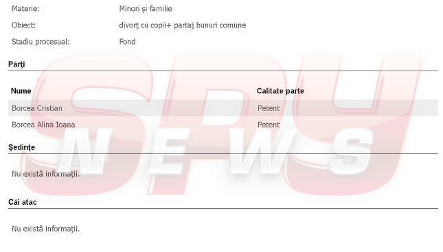 Cristi şi Alina Borcea au făcut, în cele din urmă, pasul către despărţire. Cei doi au depus, ieri seară, extrem de discret, o cerere de divorţ şi partaj la Judecătoria Buftea. Din nefericire, un semn că nu au ajuns la nicio înţelegere în afara instanţei.