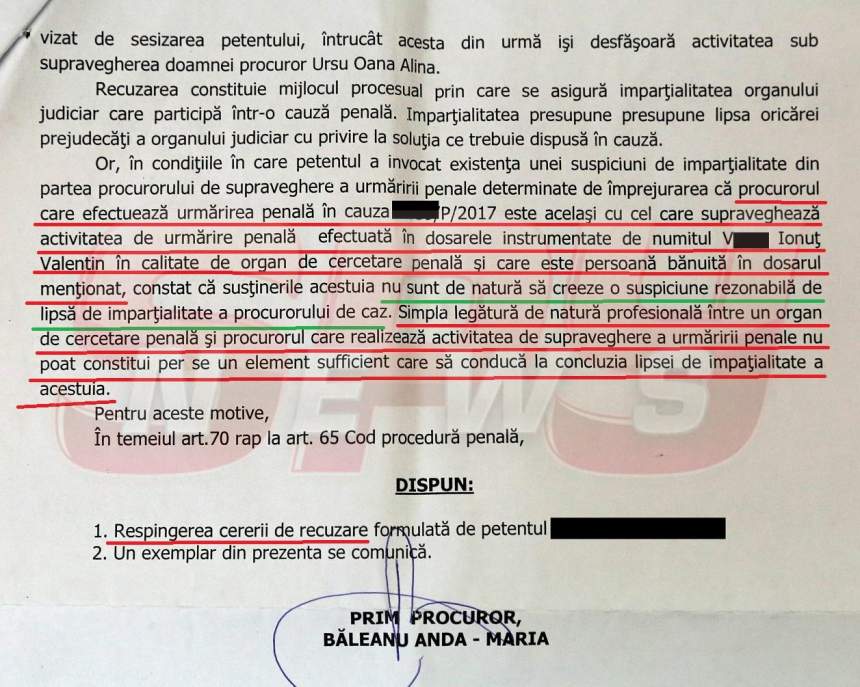 Şocat de ordonanţa şefei de parchet, reclamantul sesizat Parchetul General şi Consiliul Superior al Magistraturii, într-o încercare disperată de a obţine repartizarea dosarului unui alt procuror, care nu se trage de şireturi cu persoanele pe care le anchetează.