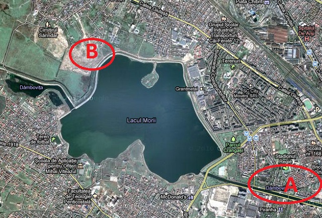 Tânăra i-a cerut taximetristului să o ducă la domiciliu (punctul A), însă agresorul a dus-o cu forţa într-o zonă pustie de lângă Lacul Morii (punctul B), unde a încercat să o supună la perversiuni