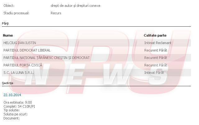 Solistul trupei Spitalul de Urgenţă a dat în judecată Partidul Democrat Liberal, PNŢCD şi Partidul Forţa Civică după ce în campania electorală din 2012 cele trei partide - aflate atunci în alianţă - s-au folosit de o melodie a acestuia fără acordul său. Dosarul se află pe masa judecătorilor de la Curtea de Apel Bucureşti.