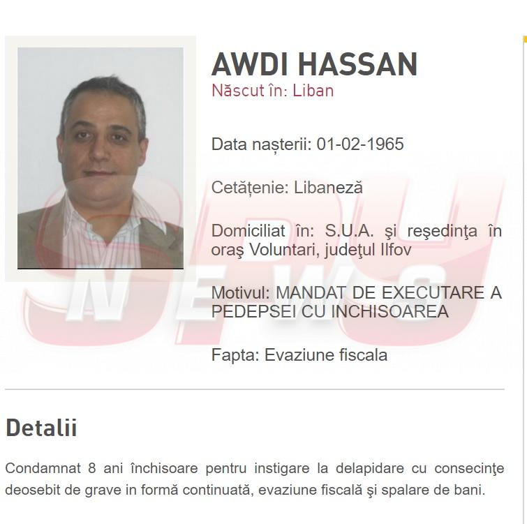 Dat în urmărire generală după ce a fost condamnat la opt ani de puşcărie, fiind acuzat "tunuri" de zeci de milioane în celebrele dosare Rodipet şi CFR Mesagerie, afaceristul de origine libaneză Hassan Awdi îşi întăreşte relaţiile cu judecătorii, la sindrofiile cu ştaif organizate în SUA.