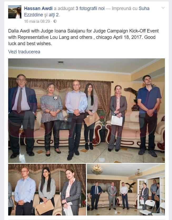 Recent, Hassan Awdi a participat la un eveniment organizat de o româncă din SUA, Ioana Sălăjanu, candidată la funcţia de judecător în statul Illinois.