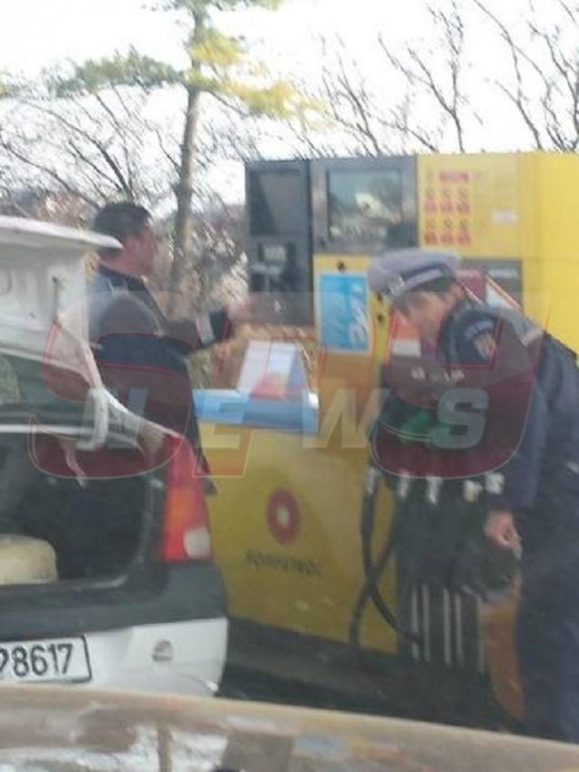 Poliţiştii s-au dat jos din maşina de serviciu, au deschis portbagajul şi au început să alimenteze. Ce este dubios este că benzina nu a ajuns în rezervor.