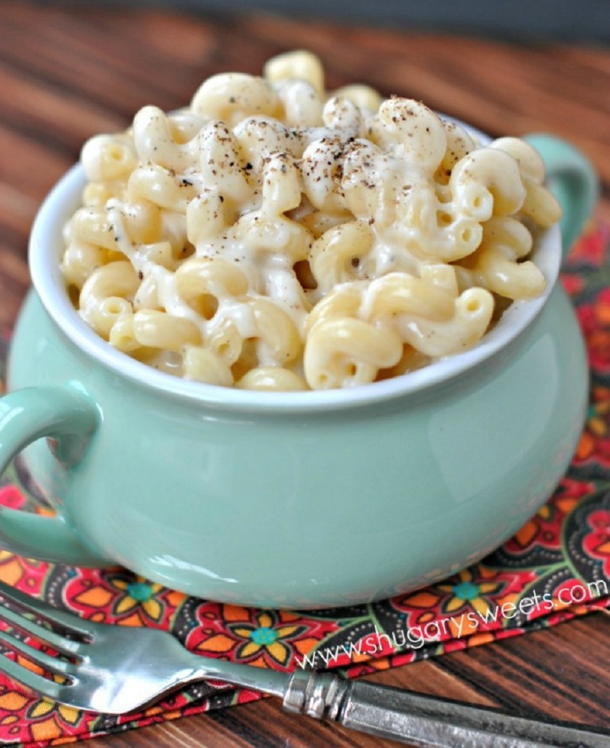 Se gătesc pastele conform instrucţiunilor de pe pachet. Într-o oală mare se adaugă untul, iar când acesta se topeşte se adaugă făina, laptele brânza, sarea, piperul şi muştarul. Se amestecă şi se lasă pe foc până ce compoziţia dă în clocot. Se adaugă pastele li se amestecă până ce acestea se combină perfect cu compoziţia. Se îndepărtează oala de pe foc şi se lasă timp de cinci minute să se odihnească.