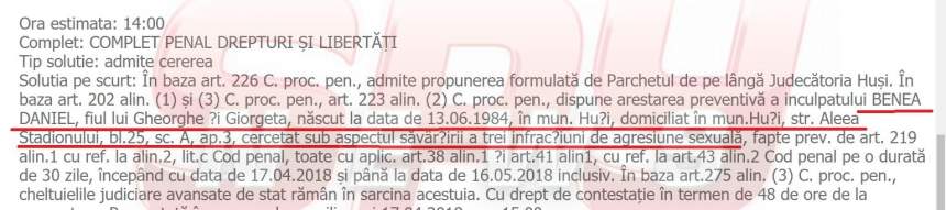 Daniel Benea, de 33 de ani, din Huşi (facsimil jos) a molestat pe 15 aprilie două fetiţe, de 5, respectiv 8 ani. Culmea, el era principal suspect în alte două dosare, cu victime minore - tentativă de viol şi agresiune sexuală -, însă alţi deştepţi – poliţiştii şi procurorii – au decis să îl cerceteze în stare de libertate. Asta în condiţiile în care Daniel Benea abia fusese eliberat condiţionat după 9 ani de închisoare - pedeapsă primită în 2008, când a violat o fetiţă de 11 ani, chiar în şcoala în care aceasta învăţa.