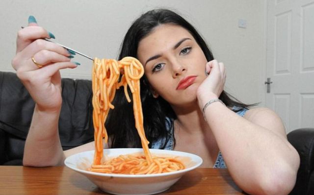 Leah Frost, o tânără de 17 ani din Marea Britanie, se hrăneşte doar cu spaghetti. Deşi mama fetei a încercat să facă tot posibilul să o facă să manânce orice altceva, aceasta nu a reuşit. "Dacă văd pe masă mâncare devin agitată şi sunt speriată de toate celelalte produse pe care nu le pot consuma. Este o fobie pe care o am din copilarie şi pe care nu am reuşit să o tratez nici măcar cu ajutorul medicului", a declarat Leah, potrivit dailymail.co.uk.