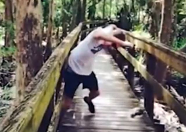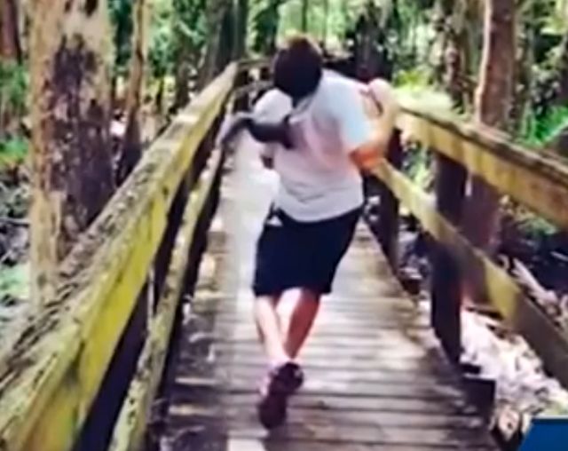 Într-una dintre imagini puteţi vedea că tânărul fuge disperat, cu veveriţa agăţată de spatele său. După incident, americanul a mărturisit că una dintre fotografii a fost făcută chiar de mama sa. E lesne de înţeles că imaginile au făcut înconjurul reţelelor de socializare.