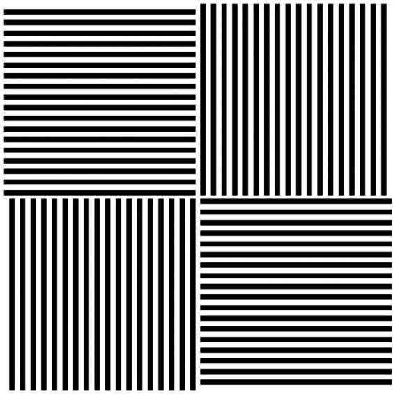 După ce ai terminat, uită-te la imaginea de mai jos, unde apar dungi alb-negre. Însă, din cauza efectului dobândit în urma dungilor precedente, ți se va părea că toate sunt colorate roșu și verde.