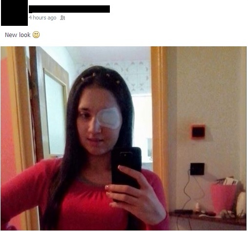 Tânăra şi-a schimbat pansamentul cu unul mult mai mic şi a ţinut să împărtăşească acest lucru cu prietenii virtuali. "New look" (n.r.- Noua înfăţişare), a scris Dana la descrierea fotografiei. Dacă este să ne luam după zâmbetul pe care fata îl avea pe faţa, tânăra pare consolată cu gândul că a rămas fără un ochi.