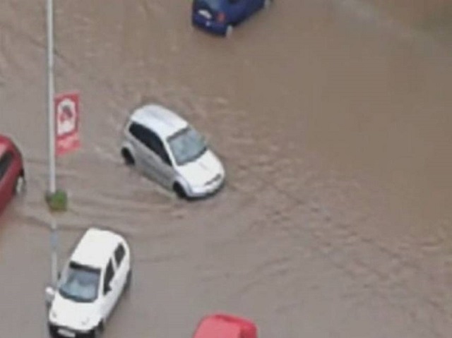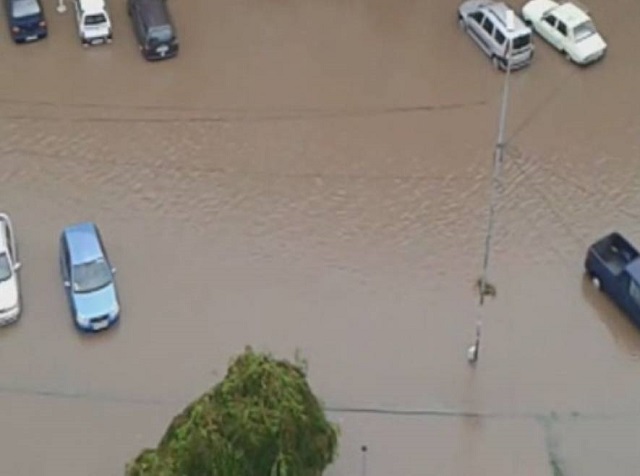 În imaginile surprinse, sâmbătă, de un amator și publicate de Neptun TV, se vede cum canalizările nu mai fac față precipitațiilor și cum șuvoaiele scurse de pe dealurile din apropiere năvălesc cu putere în oraș.