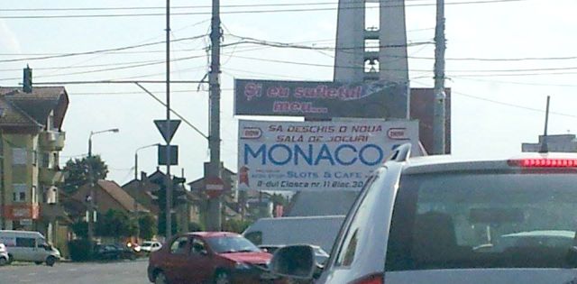 În cea mai aglomerată intersecţie din oraş a apărut pe un banner imens încă de marţi seară o declaraţie de dragoste.