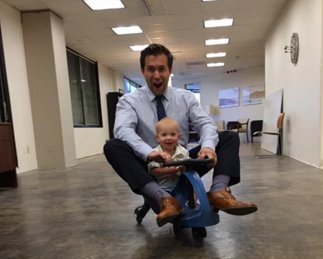 Nu, nu vă gândiți la situații grave! Bărbații știu cum să improvizeze lucruri pentru a se distra și, în același timp, pentru a avea grijă de copii.