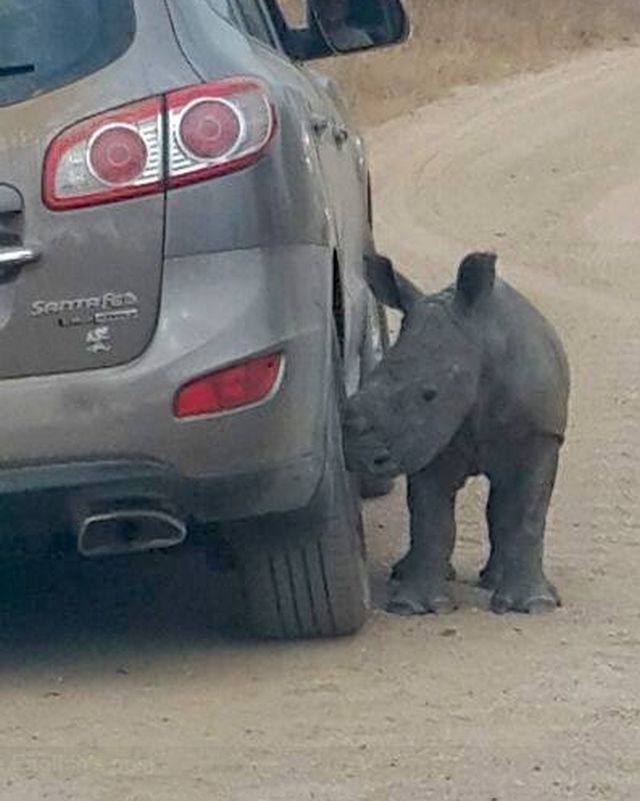 Homepage » Actualitate » FOTO / Imaginile care îţi vor frânge inima! Un pui de rinocer orfan şi-a înlocuit mămica cu un jeep