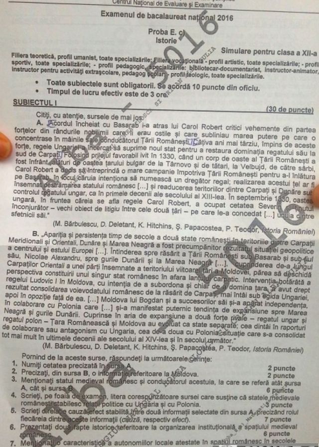 FOTO / SIMULARE BACALAUREAT 2016: Ce subiecte au avut de rezolvat elevii de clasa a XII-a la ISTORIE