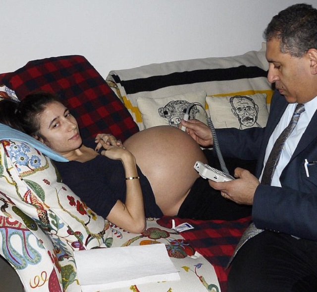 Alexandra Bolotow este gravidă în nouă luni cu gemeni. Tânăra nu s-a îngrăşat aproape deloc în timpul sarcinii, iar burta ei pare imensă faţă de restul corpului.